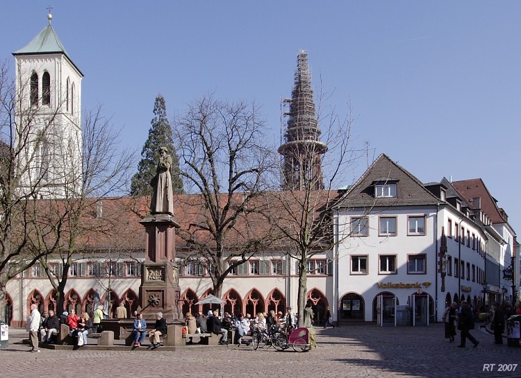 Blick auf den Franziskanerplatz, heute Rathausplatz. Fotografie von C. Clare, vor 1890mit der Ansicht 2007 zurück zum Rathaus und Umgebung Impressum