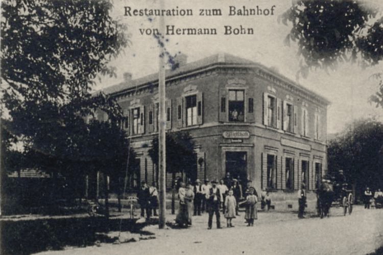 Restauration zum Bahnhof ( Heute Gasthaus Bürger Stube ), Hauptstraße und Rheinbrücke mit Limburg Ansichtskarte mit geteilter Adressseite, um 1905mit Ansichten 2005 zurück zur Sasbachseite Impressum