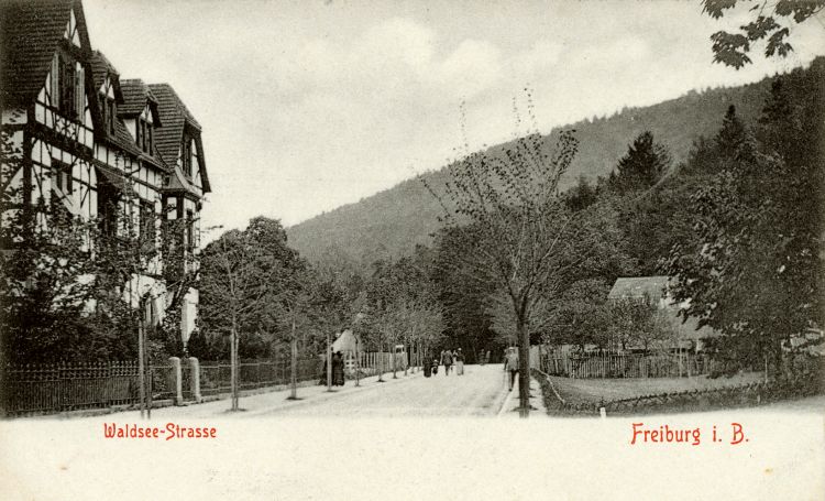 Ansichtskarte mit ungeteilter Adressseite, um 1900mit der Ansicht 2006 zurück zur Wiehre Impressum